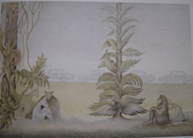 Ses étranges créatures semblent contempler sereinement le monde qui les entoure.
