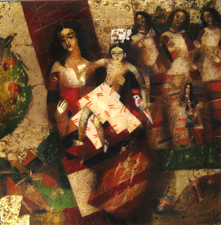 "Faisant appel à un vocabulaire symbolique et figuratif, je tente de résoudre la perpétuelle problématique posée par la surface picturale. Je cherche à mettre en lumière la manière dont les sujets mythologiques et bibliques redeviennent contemporains en reposant aujourd'hui les questions éternelles". V. Kara;